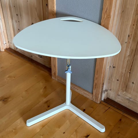 Kan justere høyde fra ca 50 til 80 cm. Bordplaten er ca 50x60 cm