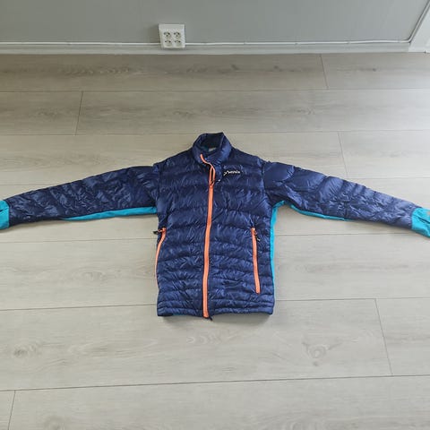 Norrøna dunjakke for dame i størrelse M. Jakken er rød med glidelås i front og lommer med glidelås. Fylt med dun (90 % dun, 10 % fjær) ifølge innvendig merkelapp. Elastikk ved håndledd for bedre passform. Egnet som lett og isolerende ytterjakke eller mellomlag i kjøligere vær. Jakken er godt brukt og har noen brukermerker her og der, men ser ellers fin ut.