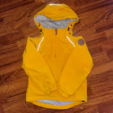 Anorakk fra Gullkorn str 116. Pent brukt, men noen flekker/misfarging, ikke forsøkt fjernet.