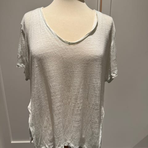 Beige T-skjorte i lin. Pent brukt. Romslig i størrelsen.