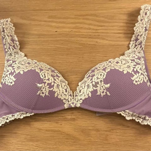 Klipte av lappen etter jeg kjøpte den fordi den var ukomfortabel men str er 70B, den har 4 justerings klasper som går opp til 75