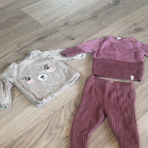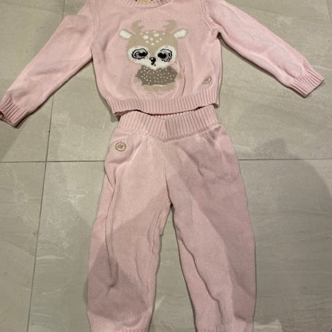Supersøtt sett fra Fixoni med bukse og genser i litt tykkere kvalitet. Knepping i halsåpning/skulder.