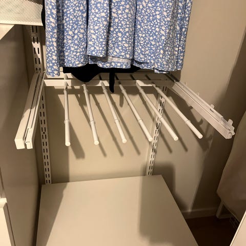 2 stk Elfa garderobestang med krok, kroken kan justeres innover stangen etter behov.