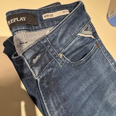 Replay jeans for dame i størrelse M med livvidde W23. En bukse er svart og de to andre er jeans helt nye med lapp. Klassisk femlommersmodell med beltehemper og knapp- og glidelåslukking. Passer til hverdagsbruk og kan kombineres med ulike topper og sko for både uformelle og mer oppkledde antrekk