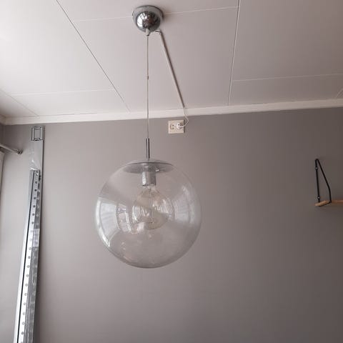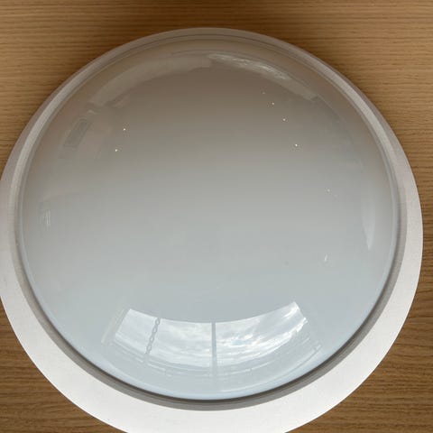 Enkel og stilren taklampe med hvit kuppel. Gir jevnt lys og passer fint i gang, bod eller soverom. Pent brukt og fungerer som den skal.