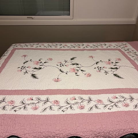 Fantastisk sengeteppe. Lett å legge på. Går å vaske ℹ vaskemaskin på 40 grader.