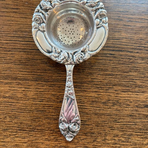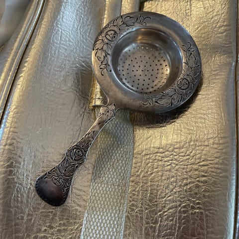 Vintage testil. 14cm lang. Den har vakre detaljer i barokk/rokokko-stil. Vet dessverre ikke noe mer om den enn at den er gammel og arvet.
