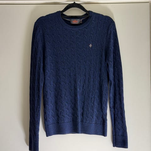 Genseren er svært pent brukt og fremstår som nesten ny. Dette er en klassisk genser som passer perfekt over skjorte eller t-shirt.
