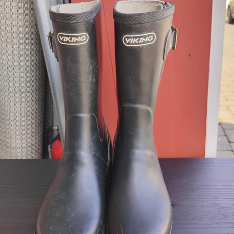 Viking gummistøvler for barn i størrelse 36. Unisex-modell i svart farge med justerbar rem øverst på skaftet. Støvlene har høyt skaft og innvendig tekstilfôr for økt komfort. Egnet til bruk i regnvær, på tur og i hverdagen der det er behov for vanntett fottøy.