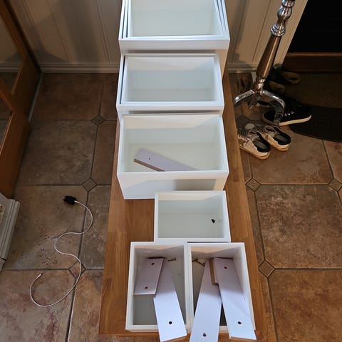 Hylla var litt for stor for stedet vi hadde tenkt den skulle henge. Den er derfor montert, men ikke brukt.