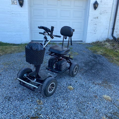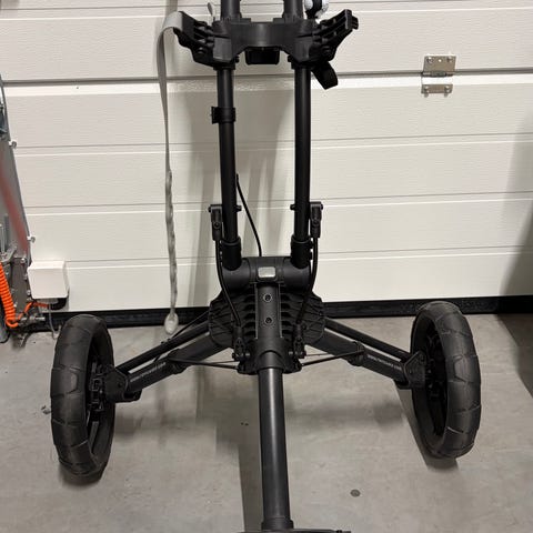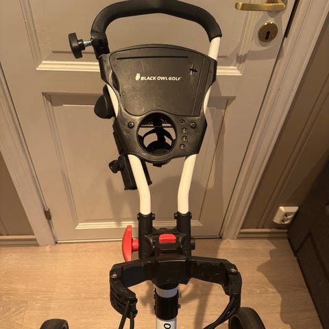 Selger en stødig 4-hjuls golftralle / golfvogn fra How True. Montert på er solid paraplyholder og flaskeholder, samt en bag for oppbevaring, denne ene lommen er kjølebag.