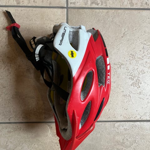 Wind 4Kids sykkelhjelm for barn i rød farge. Hjelmen har flere ventilasjonsåpninger for lufting og justerbar passform bak. Ytterskall i hardplast med innvendig støtdempende EPS-skum. Egnet til sykling og annen lett aktivitet der hodebeskyttelse er nødvendig for barn.