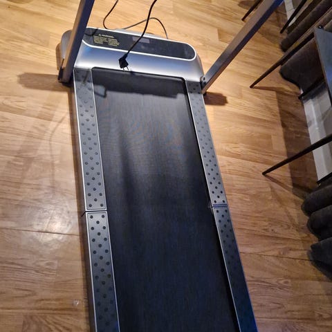 NorthTech tredemølle i grå utførelse. Kompakt modell med håndtak på begge sider og konsoll foran for enkel betjening under bruk. Løpebåndet er tilpasset innendørs trening og egner seg for gange og lett løping. Stabil konstruksjon som passer godt i hjemmemiljø, for eksempel på soverom eller i stue der det er begrenset plass.