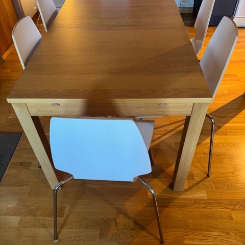 Pent brukt spisebord i eik med 6 stoler - NY PRIS