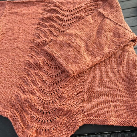 Kjempe fin hjemmestrikka genser ca str m(46 cm underarm- underarm ) 200kr, bomullsgarn, litt lysere i fargen enn på bildet