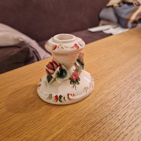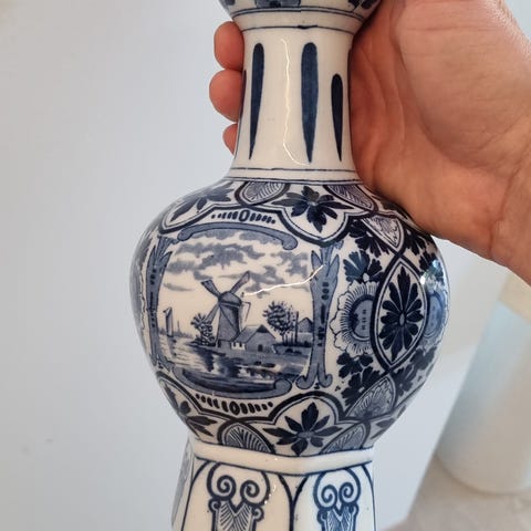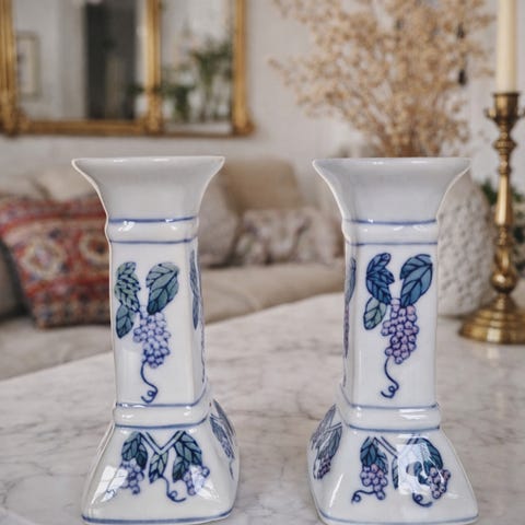 Vintage Lysestake i blå-hvit porselen