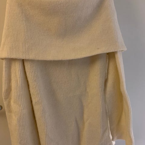 Pen og grå ribbestrikket off shoulder genser! Kun brukt en gang.