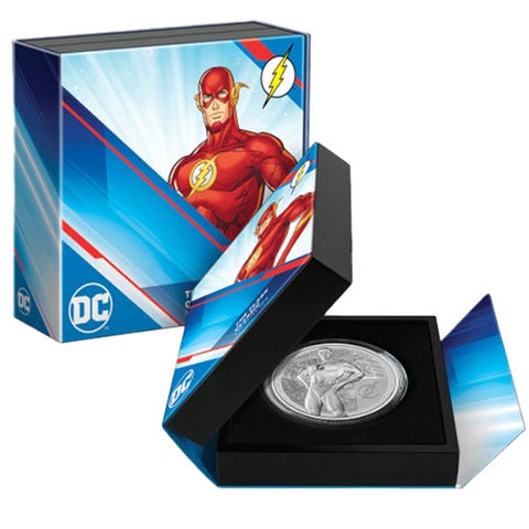 DC Comics The Flash Colour 2023, 5oz 999 sølv i eske med sertifikat
