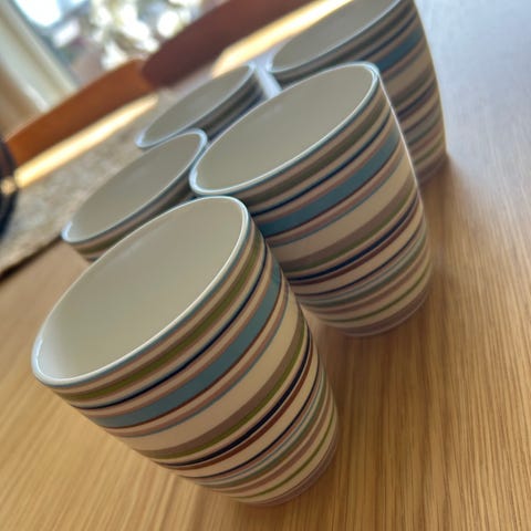 Iittala stripete porselenskopper flerfarget, 4 stk.