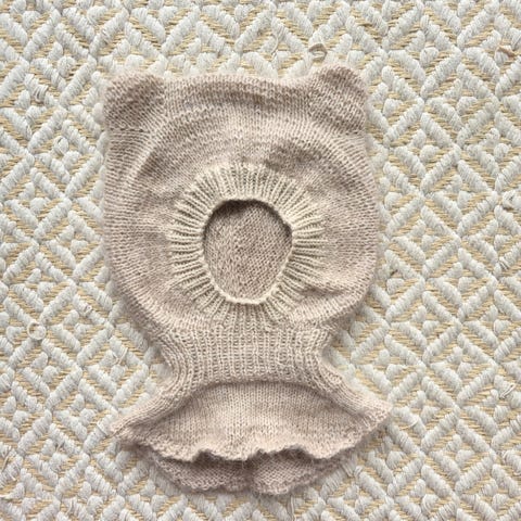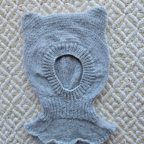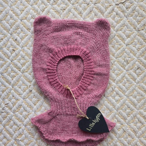 Strikket i soft silk mohair og merino garn. Som gir et mjukt og behaglig lue. Kanten rundt ansiktet er bare strikket i merino, slik at silk mohair ikke er opp mot øynene.