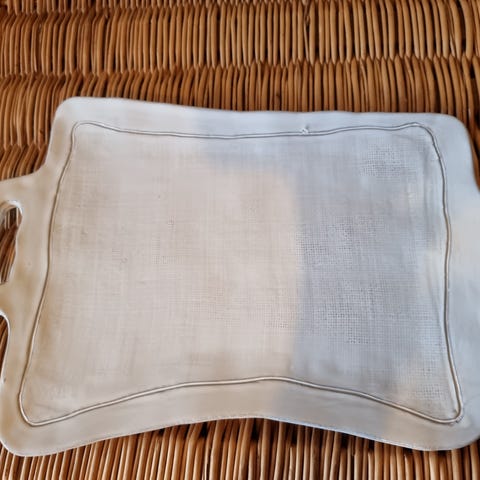Fat i keramikk fra Aina Sollie Steen selges kr 650,- pluss eventuell porto kr 69,- med PostNord. Ca 36 cm langt med hank, ca 18 cm på det bredeste. Brukt kun et par ganger og er som nytt.