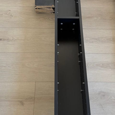 Pent brukt svart hylle med glassplate og lys( uten inneholder)