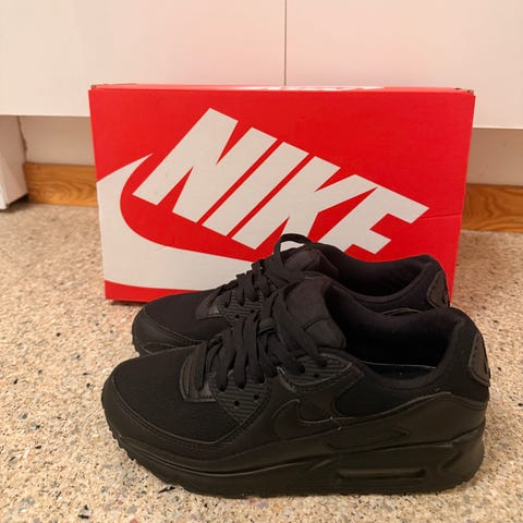Nike Air joggesko i svart med hvite detaljer. Størrelse er 36.