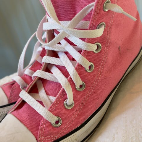 Converse Chuck Taylor All Star sneakers i høy modell. Skoene er i størrelse 38 (EU) og er laget i tekstil med gummisåle. Fargen er lys rosa.
