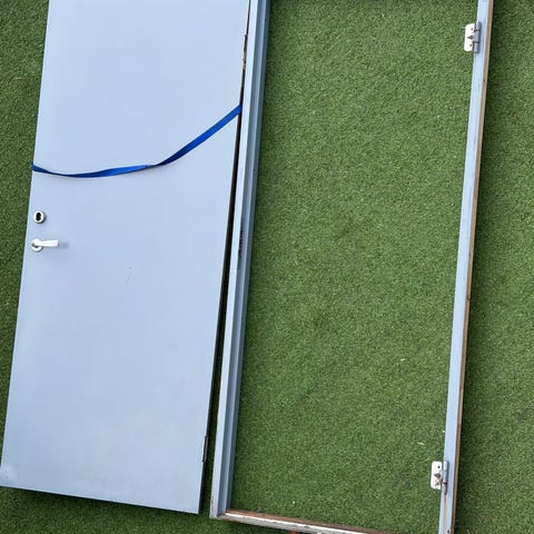 Ytter dør innadslående. 100x200. venstre hengsla.(utenfra)