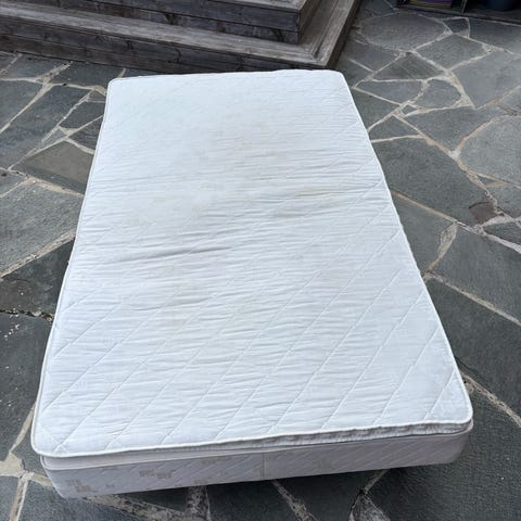 Pent brukt madrass med madrassbeskytter. Madrassen har ligget på hytta, og ikke blitt mye brukt. Madrassbeskytteren har alltid ligget over madrassen. Madrassen har pocket fjærer. Ca 21cm høy. Så vidt jeg kan huske er den medium pluss fasthet. Den er kjøpt til, og brukt av voksne, og oppleves som god å sove på.