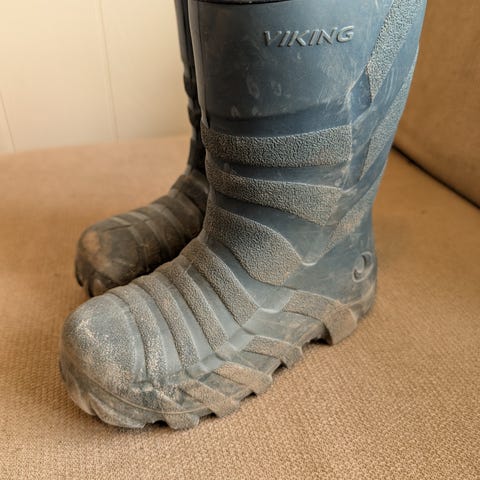 Viking gummistøvler for barn, unisex. Støvlene er blå med mønstret overdel og grov såle som gir godt grep. Egnet til bruk i regnvær, og lek utendørs.