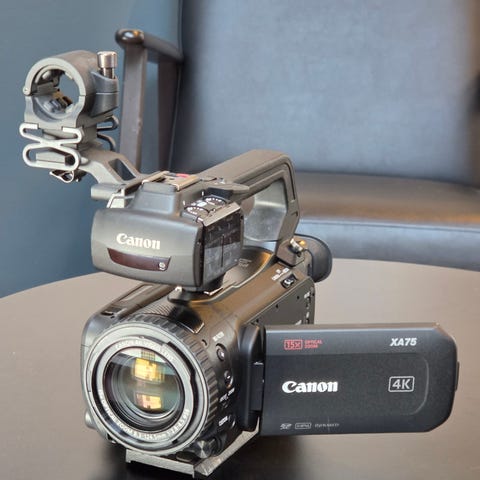Gammelt videokamera med ekstra håndgrep, linse og original oppbevaringsbag fra Canon. Ikke funksjonstestet, da jeg ikke har batteriet som trengs, men dette ser veldig pent brukt ut. Batterihuset ser pent ut.