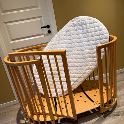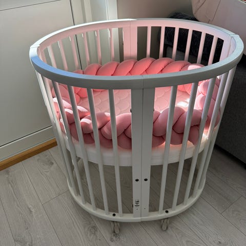 Stokke Sleepi Mini V3 med madrass, laken, sengehimmel og stang inkludert. Brukt til et barn i 5 måneder. Svært pent brukt.