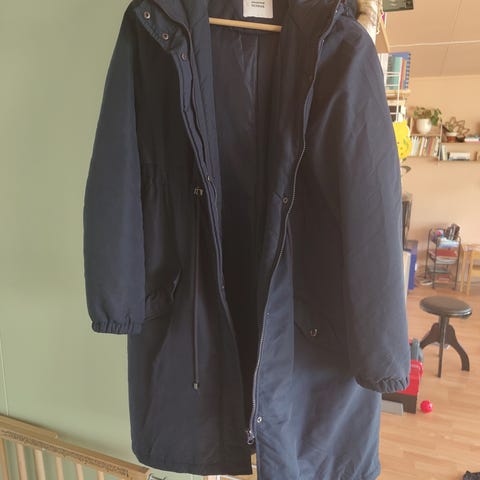 Kjempe fin blå tynn gravid-boblejakke perfekt til våren! Kun pent brukt av meg. Den er utvidbar i sidene m glidelås. Veldig praktisk. God i størrelsen, så passer L-XL vil jeg si, med lang rygg. Jeg er 176 cm selv og synes den var lang og god når jeg var høygravid. Kan justeres nederst m strikker.