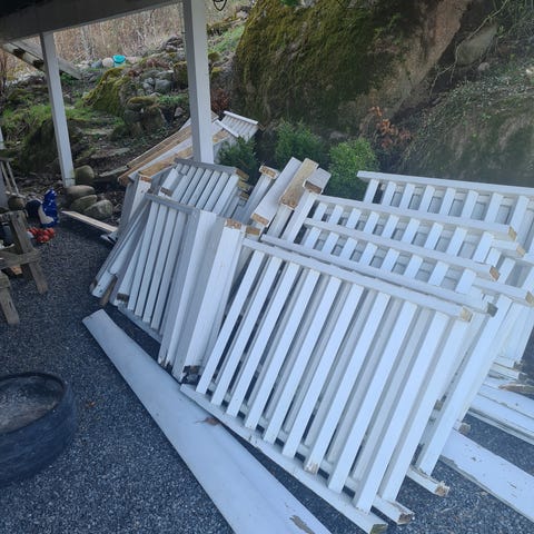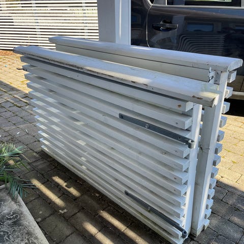 Hvit hagegjerde panel i tre. Panelene har liggende bord nederst og spiler med kryssdekor øverst. Egnet som gjerde eller skjermvegg i hage eller på terrasse. Kan festes til eksisterende stolper eller monteres med nye stolper etter behov. Passer til avskjerming mot innsyn eller som dekorativ avgrensning av uteområdet.