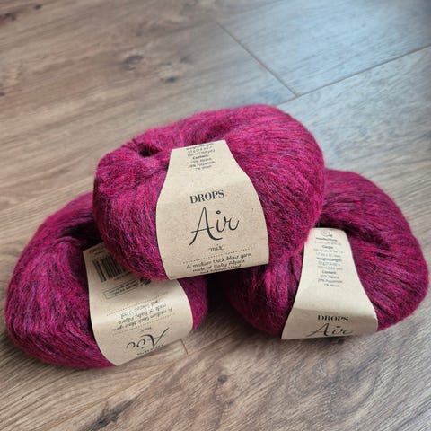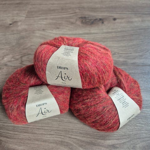 Drops Air garnnøste i fargenr. 7 / 1467, Hvert nøste veier 50 g og har en lengde på ca. 150 m. Strikkefasthet er 17 masker x 22 rader på 10 x 10 cm med anbefalt pinnestørrelse 5 mm. Garnet består av 65 % alpakka, 28 % polyamid og 7 % ull. Egnet til ulike strikke- og hekleprosjekter som gensere, jakker, tilbehør og andre plagg der en lett og myk garnkvalitet ønskes.