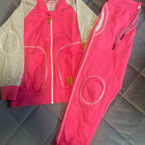 Hummel joggedress for barn i størrelse 122. Sett med jakke og bukse i oransje farge med kontrastdetaljer langs sidene. Jakken har glidelås foran og ribbekanter ved ermer og nederkant. Buksen har strikk og ribb nederst ved bena. Passer til hverdagsbruk og ulike fritidsaktiviteter.