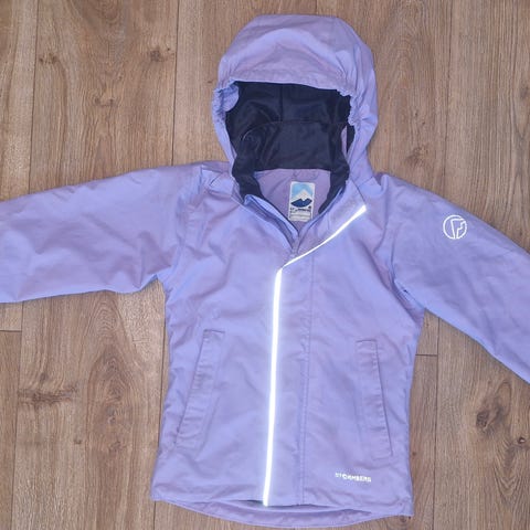 Lyselilla vattert jakke i størrelse 116. Jakken passer veldig bra til sesong mellom vinter og vår eller som høstjakker. Røykfritt og dyrefritt hjem. Ikke vasket førs salg, derav noen skyggeflekker (tror disse skal gå bort i vask).