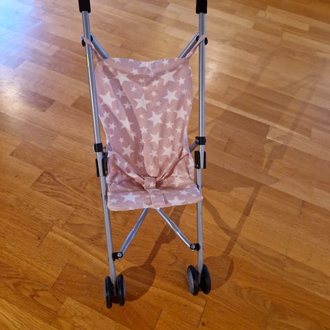 Hendig liten trille som kan slås sammen. Må hentes på Ugla.