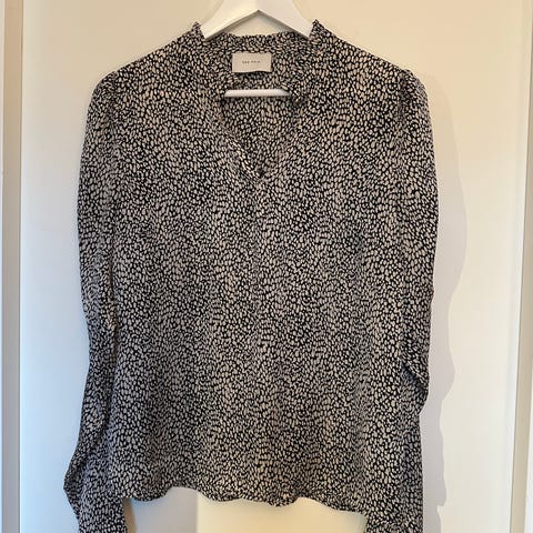 Pen og veldig lite brukt, svart, beige og off-white blomstermønster. Flotte ballongermer med løs bred strikk, behagelig å ha på. Selger fordi jeg ikke bruker den lenger.