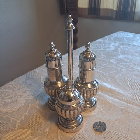 Vintage salt og pepperbøsse i sølvplett kr 180