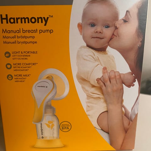 Medela Harmony manuell brystpumpe. Boksen er åpnet og utstyret er sterilisert, men aldri vært i bruk.