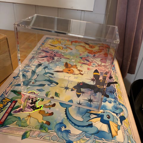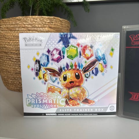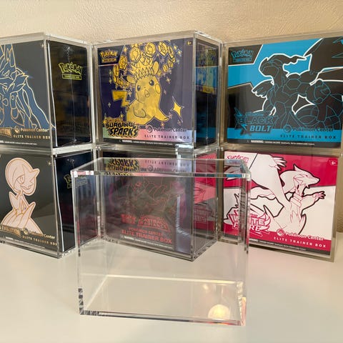 Akryl til etb elite trainer box som vist her med prismatic evolutions etb, passer veldig bra.