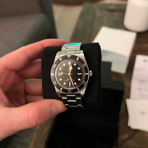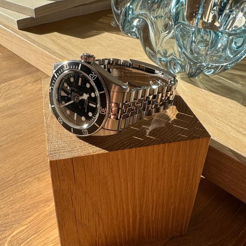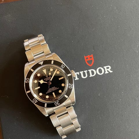 Vurderer å selge en Tudor Black Bay 54 (Ref: 79000N-0002) kjøpt hos Urmaker Bjerke i 2023. Klokken er i meget fin stand, men noen vanlige "hairlines" bruksmerker. Følger oss med orginal natoreim fra Tudor.