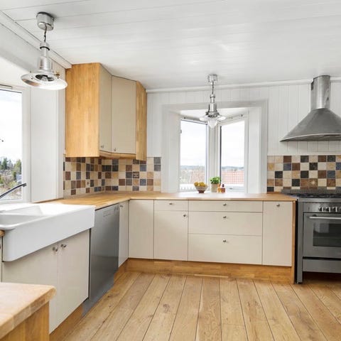Kjøkkenet har noen bruksmerker men er absolutt funksjonelt.