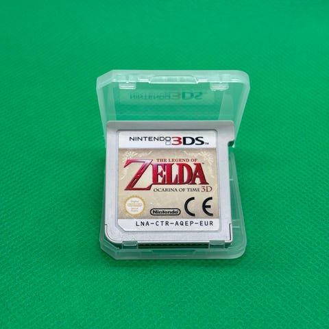 Nintendo The Legend of Zelda Ocarina of Time 3D spillkassett for Nintendo 3DS. Fysisk spillkassett med europeisk regionkode (EUR). Spillet er tilpasset Nintendo 3DS-konsoller og er lagret på original 3DS-kassett som vist på bildene.