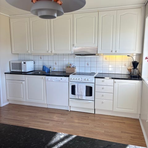 Hvitevarer som medfølger er: stekeovn, vifte/ventilator og oppvaskmaskin. Det gjøres oppmerksom på at hvitevarene er godt brukt og selges som de er.