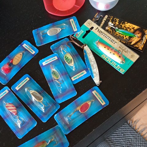 Selger alle fiskefortommer og kroker fordi jeg har sluttet med fiske.