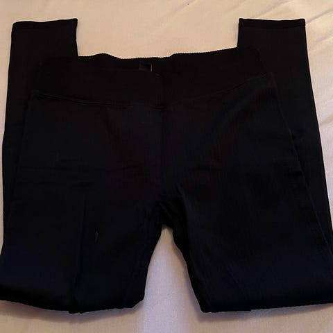 Treningsbukse for dame i størrelse L. Buksen har høyt liv og rette, vide ben som gir god bevegelsesfrihet til fitness og annen trening. Fargen er beige/nøytral. Stoffet er elastisk og kroppsnært øverst, med mer romslig passform fra hofte og ned. Passer til innendørstrening, gruppetimer eller rolig aktivitet. Kan kombineres med sports-bh eller treningstopp etter ønske. Nypris er 799kr