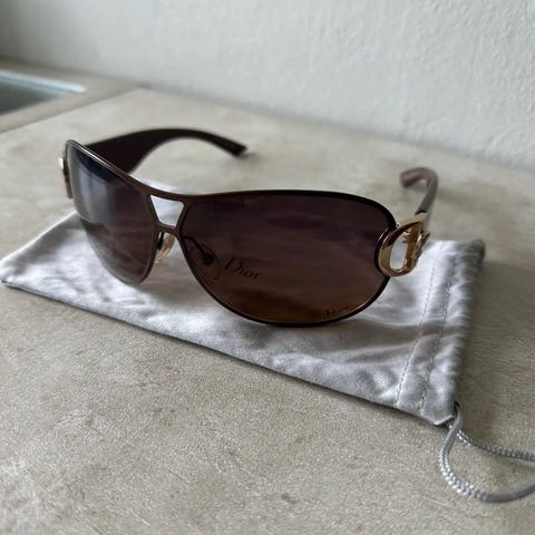 Selger et nesten ubrukt par Dior Diorissimo 2-solbriller fra den ettertraktede Galliano-æraen. Brillene er i praktisk talt perfekt stand – helt ripefrie og uten tegn til slitasje.
